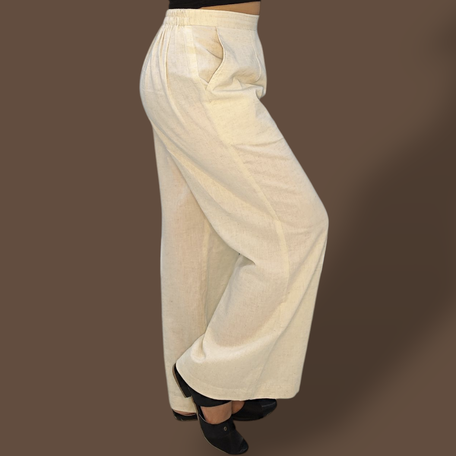 Elevate your wardrobe with our versatile Cotton-Linen Pants. These straight leg pants are designed with a back elastic waistband and convenient pockets for maximum comfort and functionality. The off-white color complements any top, making it a versatile addition to any outfit. Perfect for any occasion.