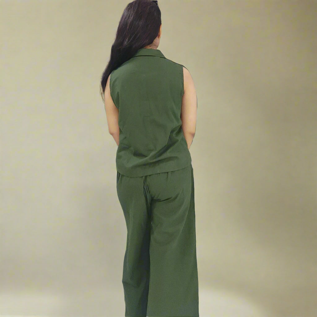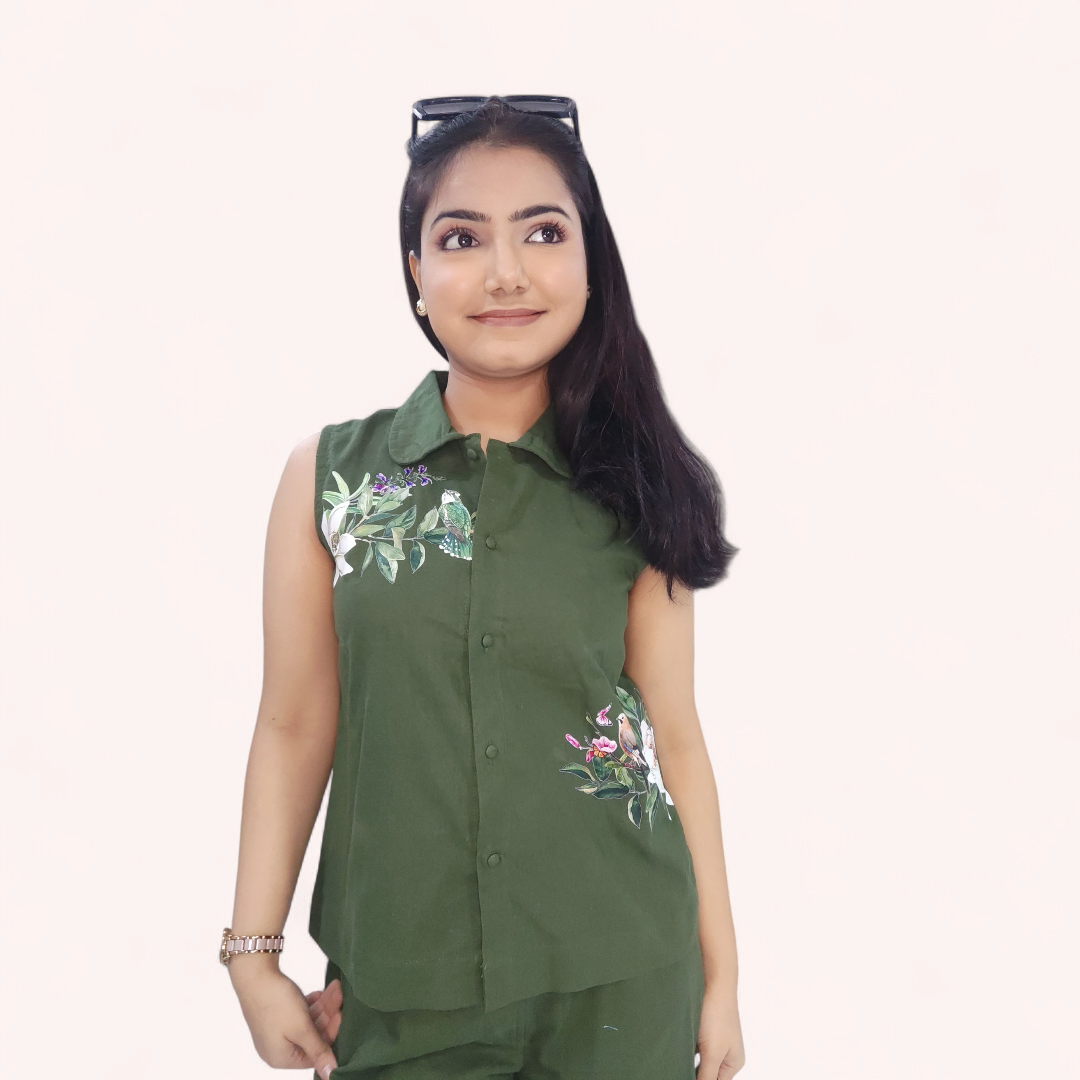 - Sleeveless Placement Print Shirt Style Co-ord Set