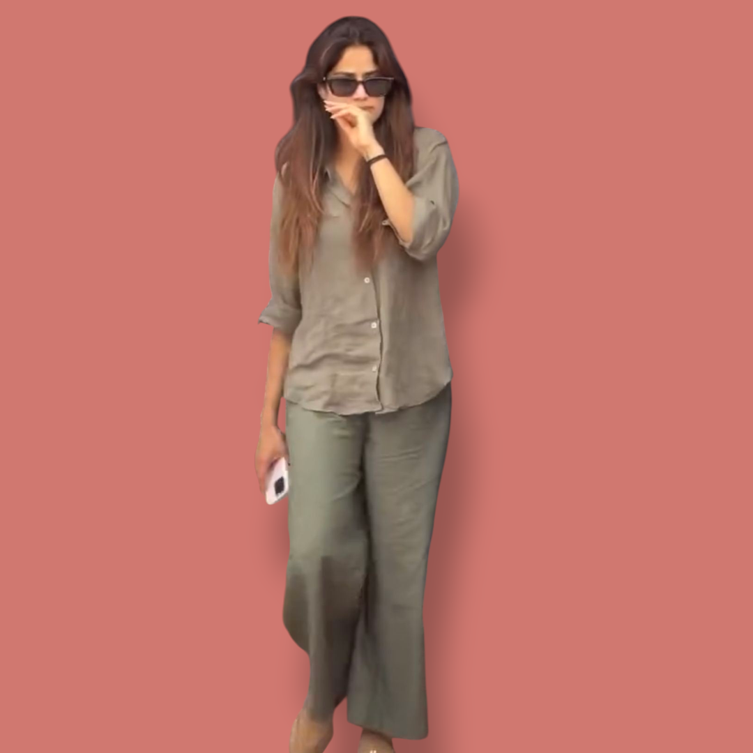 Stay stylish and comfortable with the Janhvi Co-ord Set. Made from a soft cotton linen blend, this grey shirt style co ord is perfect for any occasion. As seen on your favorite Bollywood celebs, this set is sure to elevate your fashion game. Get yours today and feel like a star!